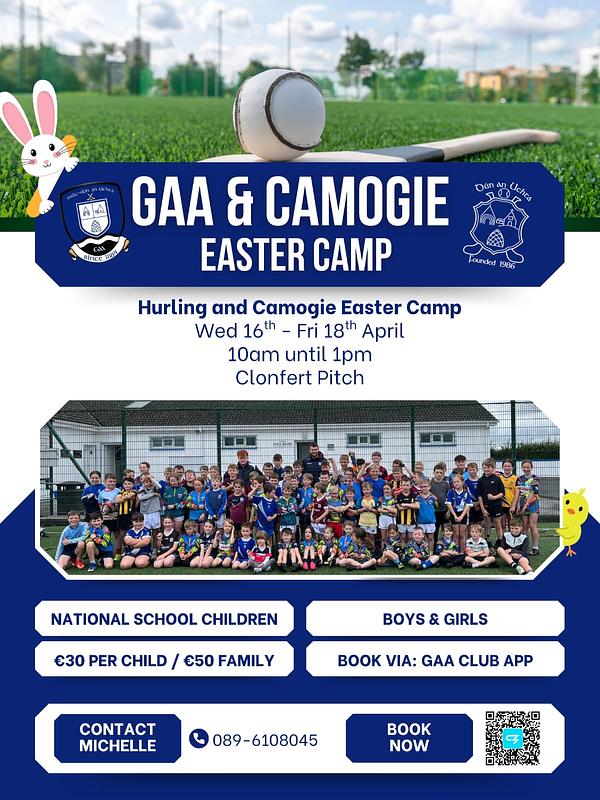 Meelick Eyrecourt GAA and Eyrecourt Camogie are delighted to announce our Easter Camp for National School age children, taking place Wednesday 16th to Friday 18th April.